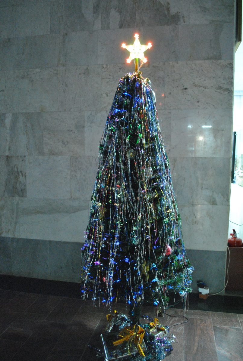 Сегодня в новый год елку можно встретить почти в каждом доме. Но так было не всегда. У новогодней елки в России своя очень интересная судьба. Раньше на Руси символами Нового года были дуб и береза. Царь Петр Первый, издав указ о перенесении празднования Нового года, повелел не только петь, веселиться, палить из пушек и устраивать фейерверки в праздничные дни, но и украшать большие улицы и дома сосновыми и еловыми ветками. Но в домах елках появилась только в середине 19го столетия. Новогодние елки украшали снежинками и звездочками, сладостями фруктами и свечами. Появлялись первые елочные базары. В Музее стекла и хрусталя тоже установили прекрасный символ нового года – елку. Радуя всех посетителей переливами огней и создавая прекрасное настроение.