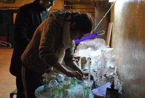 В Музее стекла и хрусталя собрана большая коллекция современного художественного стекла. В дни симпозиумов, проходящих почти ежегодно в г. Никольске, известные художники-стекольщики и студенты, которые только начали постигать эту профессию, работая на стекольных предприятиях города, создают совершенно невероятные художественные композиции, используя самые разные техники изготовления. Очень часто в настоящее время стали использовать склейку элементов композиции и происходит это не всегда удачно. Бывает так, что художники уезжают, а работа оказывается потом не востребованной из-за неудачной склейки, попросту говоря, расклеивается и оседает в недрах запасников из-за невозможности экспонирования. Сегодня нам повезло, приехала автор работы «Шумел камыш», начинающая художница из Москвы Ася Шалимова. Она была участником Молодёжного фестиваля и VIII Международного симпозиума по художественному стеклу в Никольске. Одну работу Аси тоже постигла неудача: части композиции расклеились. Мы попросили её восстановить и к нашей радости она согласилась. Асе помог в реставрации молодой выдувальщик, никольчанин Сергей Бацанин, который тоже участвовал в создании этой композиции. Теперь «Шумел камыш» можно экспонировать на выставках современного стекла. Сейчас в экспозиции первого этажа Музея стекла и хрусталя представлены две работы этого молодого творческого союза «Зима близко» и «Наутилус», о которых мы уже писали на сайте.