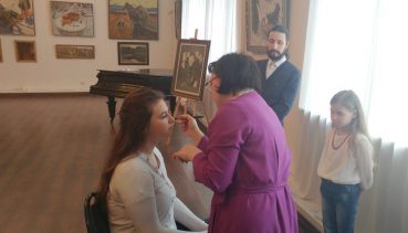 В фотосессии принимали участие три модели, которые являются родственниками: девочка Ксения пришла вместе с тетей Ангелиной и папой Сергеем. Они обнаружили сходство с яркими портретами в экспозиции картинной галереи: с работой Константина Егоровича Маковского «Девочка с кувшином», одной из жемчужин коллекции музея -«Портретом Варвары Дмитриевны Римской-Корсаковой» Франца Ксавера Винтерхальтера, и знаменитым «Иноком» Константина Аполлоновича Савицкого.