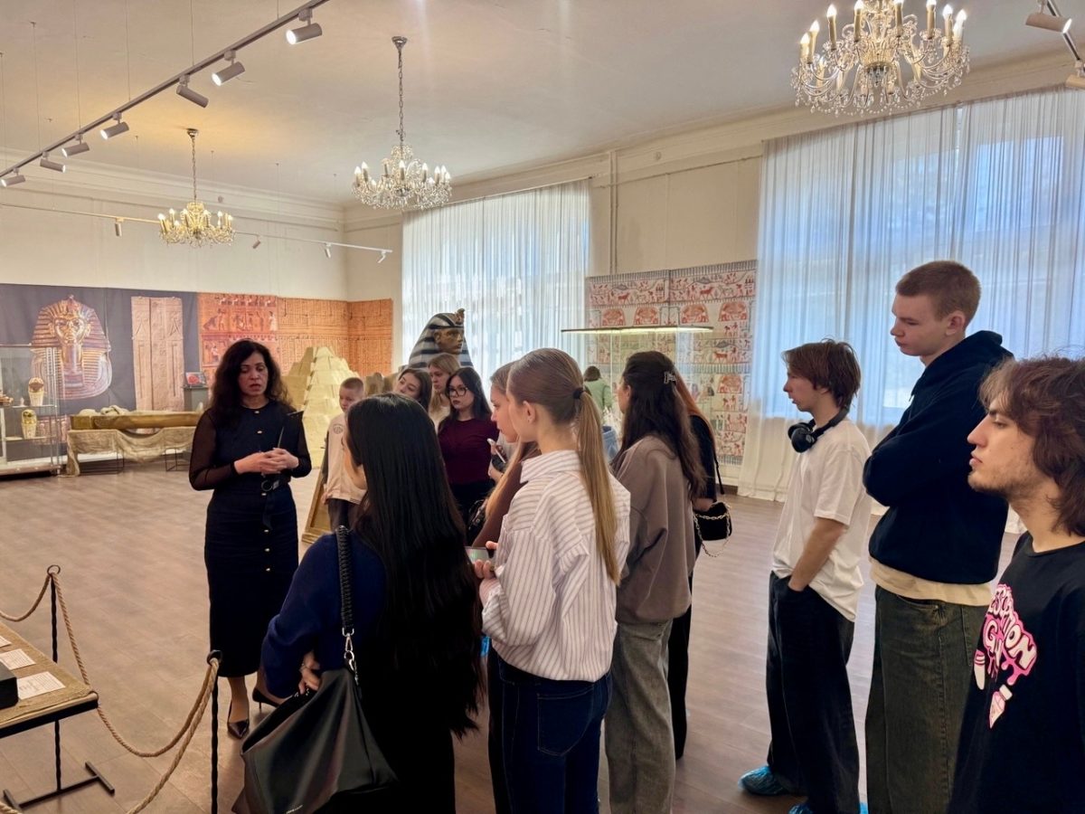 В ходе мероприятия участники познакомились с копиями редких артефактов из гробницы Тутанхамона. Экскурсовод подробно рассказал о ключевых аспектах древнеегипетской культуры: религиозных воззрениях, традиционных обычаях и особенностях художественного наследия эпохи. Особую атмосферу погружения в историю обеспечили масштабные реконструкции и интерактивные экспозиции, позволившие гостям в полной мере ощутить колорит Древнего Египта. Выставка вызвала живой интерес у студенческой аудитории и оставила у участников яркие, запоминающиеся впечатления.