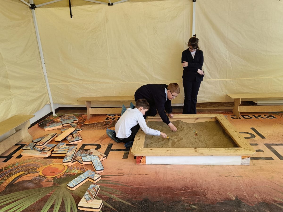А после ребята отправились в интерактивную комнату, где смогли примерить образ фараона, писать на древнем языке, стать археологами и даже построить собственную пирамиду как древние египтяне!