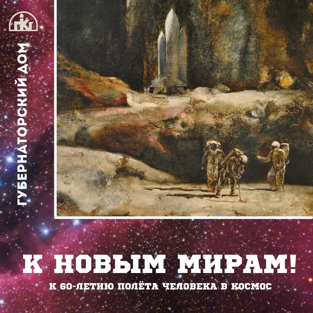 К 60-летию первого полета человека в космос в Губернаторском доме начала работу выставка «К новым мирам!». ☄Эта экспозиция состоит из двух поистине масштабных полотен народного художника России Юрия Пахадаева. Особая тема в творчестве Ю. А. Походаева – Космос.? Таинственная Вселенная, Мир звёзд и галактик вдохновили живописца на создание «космической» серии полотен, где романтика земных деяний вдохновили образ человека-творца.