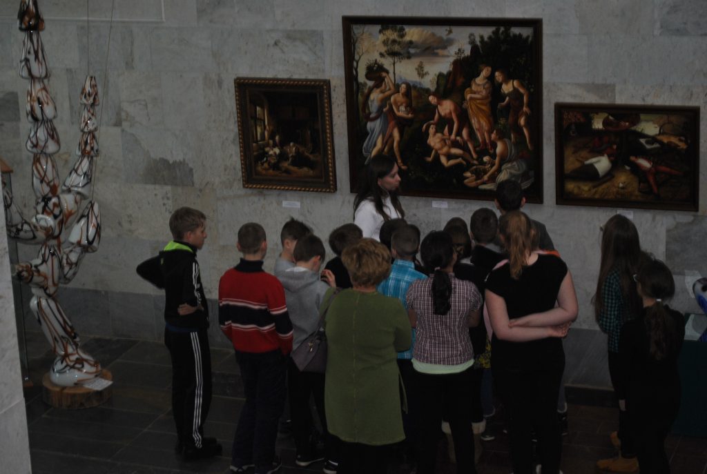 В последние дни работы выставки «Малая пинакотека» в Музее стекла и хрусталя особенно многолюдно. Никольчане решили воспользоваться последним шансом прикоснуться к прекрасному, несмотря на совсем не весеннюю погоду за окном. Ведь не так часто в маленьком городе можно познакомиться с копиями картин европейских художников XVI-XVII вв. В основном посетителями выставки стали школьники, т.к. в эти дни у ребят каникулы.