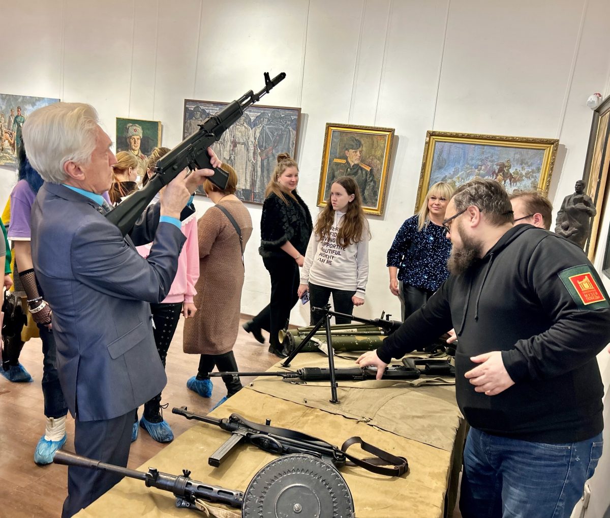 Выставку открыл директор галереи Кирилл Владимирович Застрожный. Он подчеркнул, что экспозиция картин воплощает идею: подвиг защитников Отечества – вне времени. Они самоотверженно стояли на страже Родины в прошлом и продолжают защищать ее сегодня.