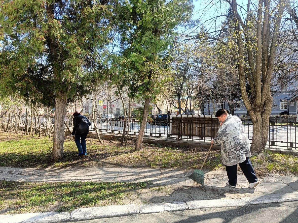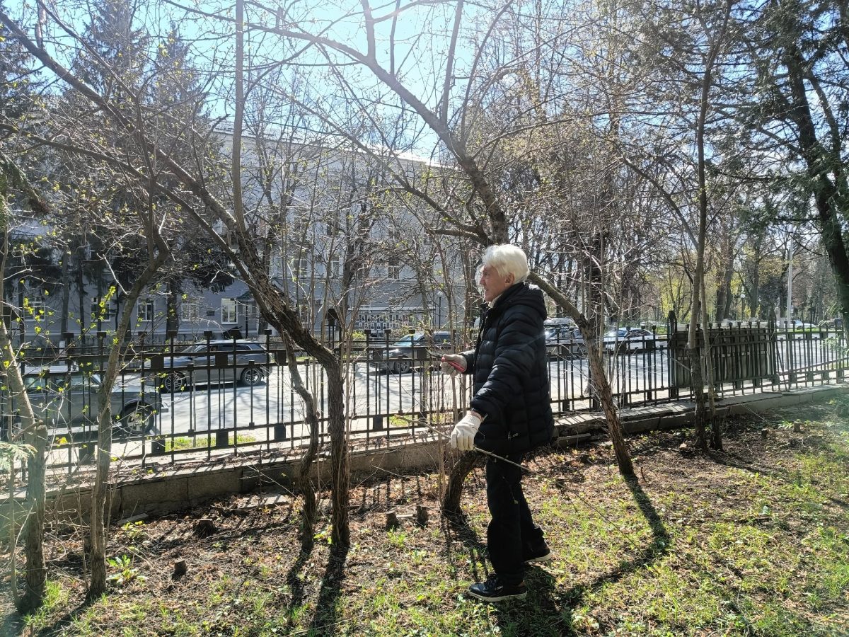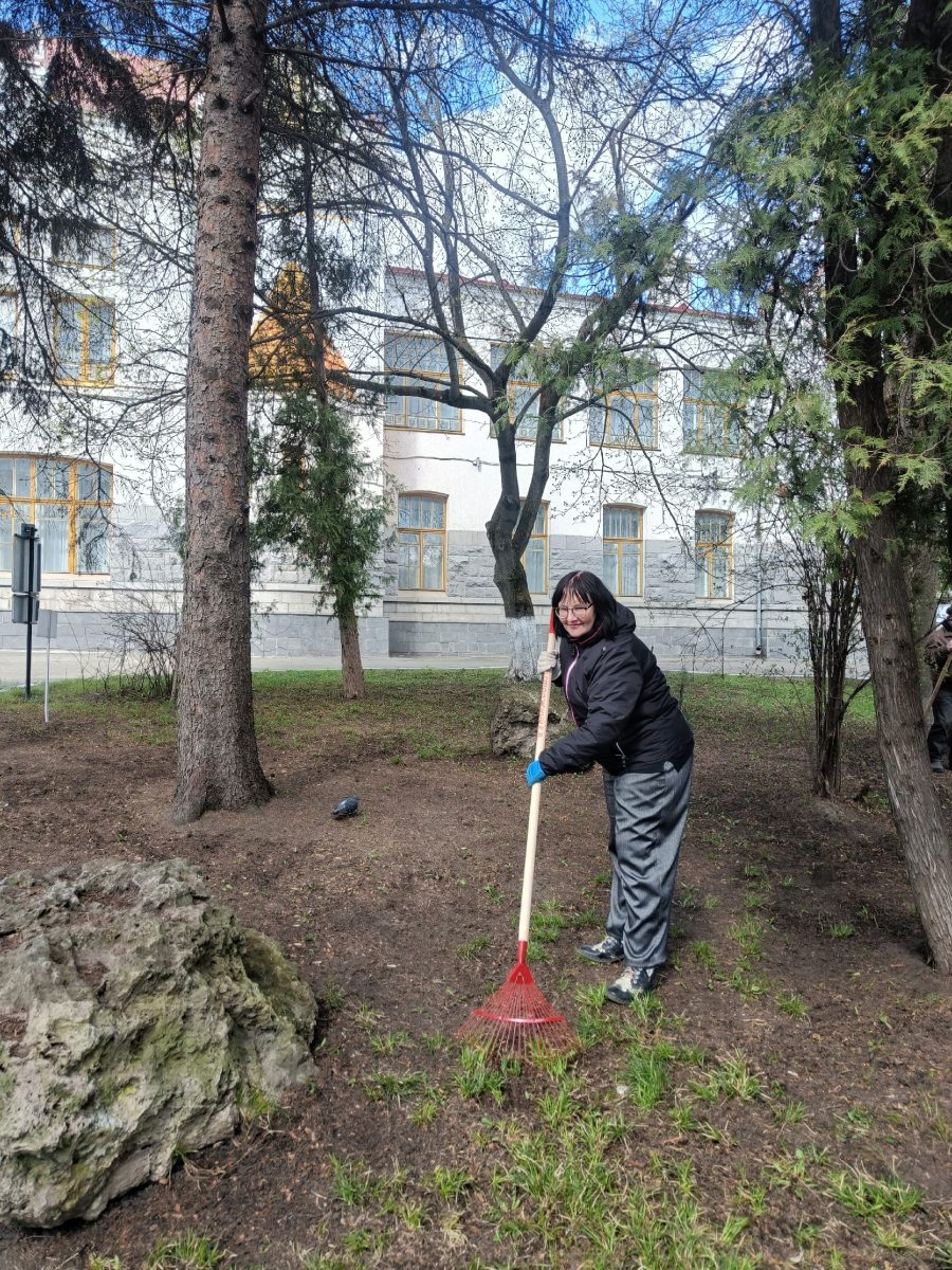 Мы подрезали кроны деревьев, убрали последние напоминания о зиме в виде прошлогодних листьев, а также подмели дорожки на территории галереи.