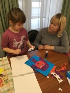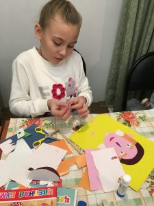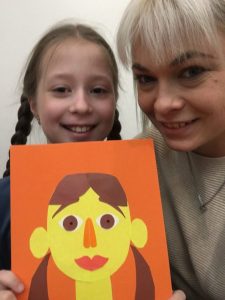 Сегодня, 4 ноября, в семейной Студии эстетического воспитания «Школа радости» мы говорили о таком жанре изобразительного искусства, как портрет. Портретная живопись – один из самых сложных и значительных жанров изобразительного искусства. Это не просто воспроизведение черт конкретного человека, а понимание его внутреннего мира, сущности его характера, неповторимости облика; выражение художником своего отношения к изображаемому. Ни один другой жанр живописи не раскрывает человека так, как это делает портрет. Особый вид портрета – автопортрет. Об этом мы тоже успели поговорить, затем создали свои «Веселые портреты» в технике аппликации.