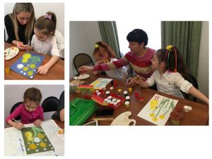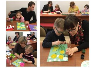 Сегодня, 22 апреля, в нашей семейной студии эстетического воспитания «Школа радости» самые маленькие ребята говорили о весне и о прекрасных весенних цветах – Одуванчиках. Еще немного, установится тепло и на каждой лужайке, в каждом скверике, на каждой полянке расцветут веселые желтые пушистые цветочки. В смешенной технике ребята изобразили эти весенние «солнышки».