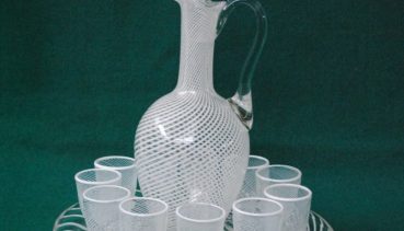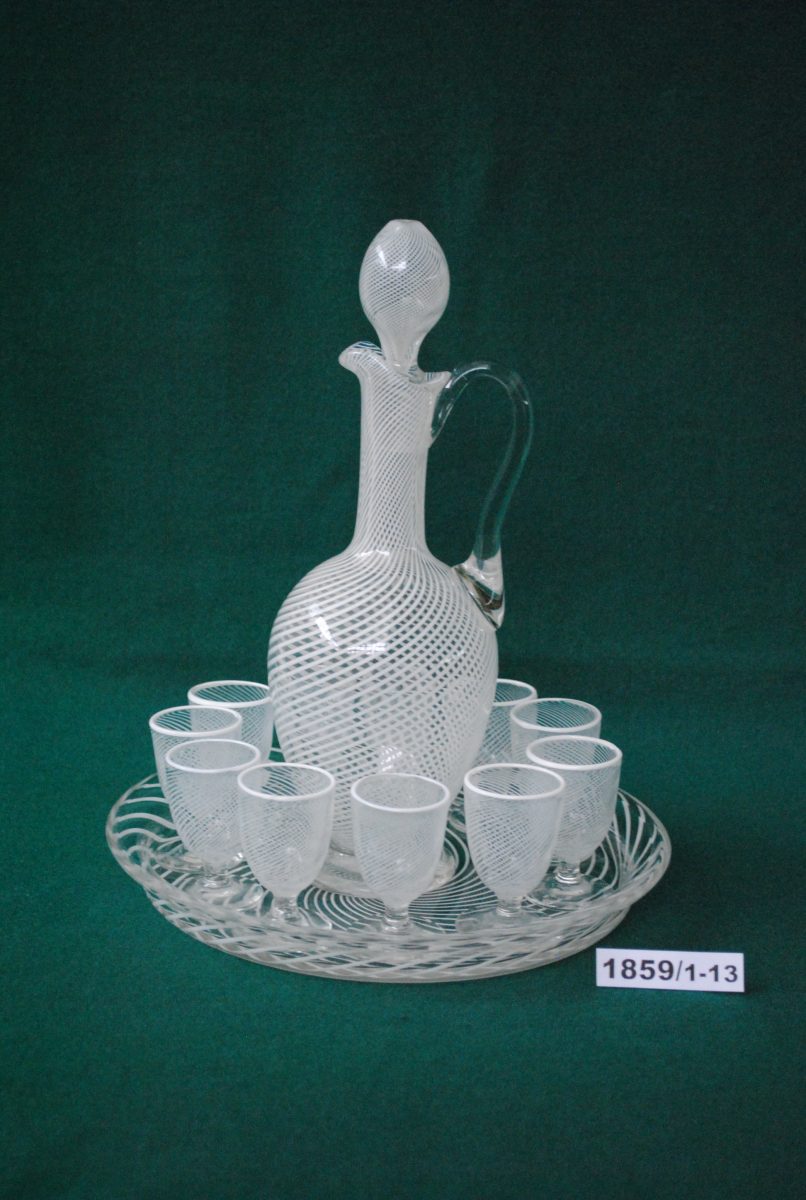 Внимание посетителей Музея стекла и хрусталя всегда привлекают изделия, выполненные в технике «венецианская нить». Так называют метод декорирования изделий из стекла заранее заготовленными стеклянными штабиками-дротами. Узор на изделиях немного напоминает рисунок красками, но он выполнен мастером выдувальщиком высочайшего класса. В коллекции музея такая техника встречается в витринах XIX –XX веков.