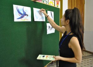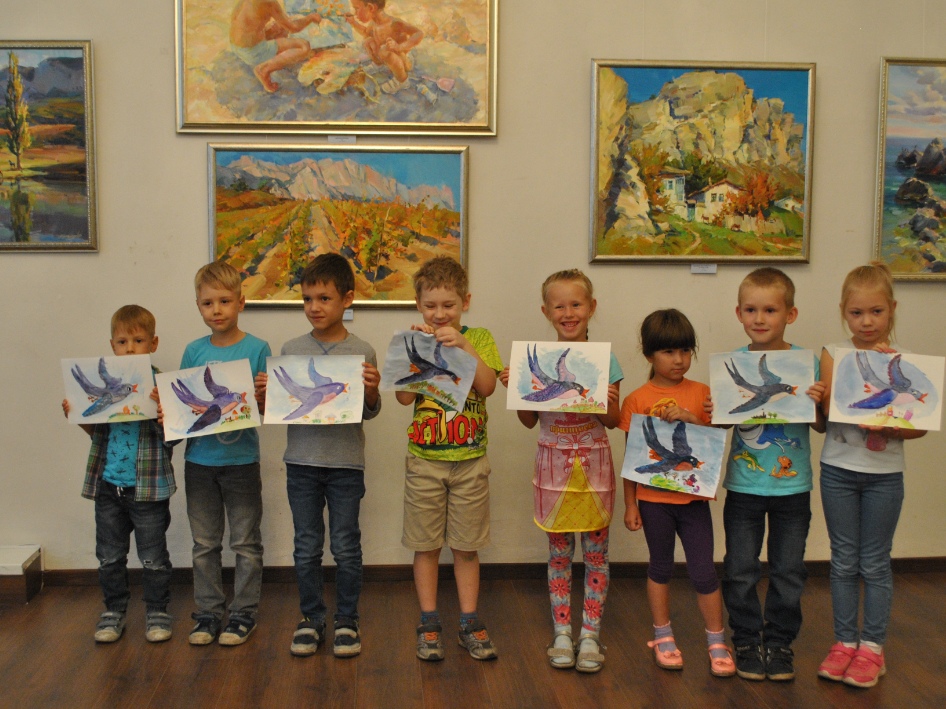Сегодня, 16 сентября, в картинной галерее прошли занятия в новых группах студии эстетического развития «Школа Радости». Свой урок мы начали с просмотра солнечной и жизнерадостной выставки Анастасии Калюжной. Мы с ребятами вспомнили, какое чудесное было лето! Как прекрасно, что солнышко до сих пор радует нас своими теплыми лучиками! Вдохновленные живописными произведениями, ребята отправились в класс . Вместе с преподавателем дети нарисовали акварельными красками прекрасную ласточку, которая уже отправилась в свой дальний путь, в теплые тропические края.