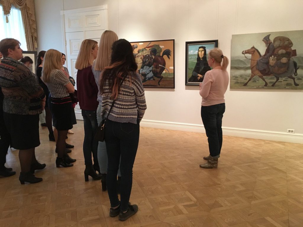 В Губернаторском доме начала свою работу персональная выставка художника Зорикто Доржиева «Степная история». Творческий диапазон Зорикто Доржиева невероятно широк – он и поэт, и музыкант, и скульптор. Однако главным способом его миропознания, безусловно, является живопись. Художник Зорикто Доржиев, картины которого известны в России, США, Австралии и Германии и являются изюминкой многих частных коллекций, воплощает в своих произведениях любовь к бескрайней степи, восточным сказкам и национальным легендам. Любимые сюжеты Доржиева: воины, кочевники, пастухи, лучники, восточные женщины и богатыри. Познакомиться с произведениями уникального художника, который органично сочетает традиционные национальные мотивы с современным художественным языком, пришли сегодня, 18 апреля, сотрудники Пенсионного фонда. Для них были проведены экскурсии по экспозиции выставки. Гости с большим интересом погрузились в мир Зорикто, в его «Степную историю».