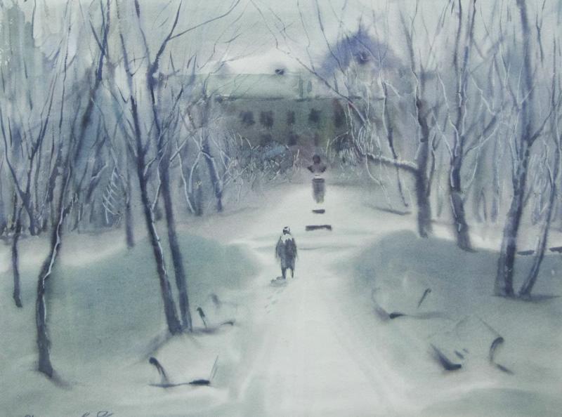 🖼Афанасьев Анатолий Петрович (1929-2023). Сквер имени Лермонтова. Зимняя сказка. 1986.
