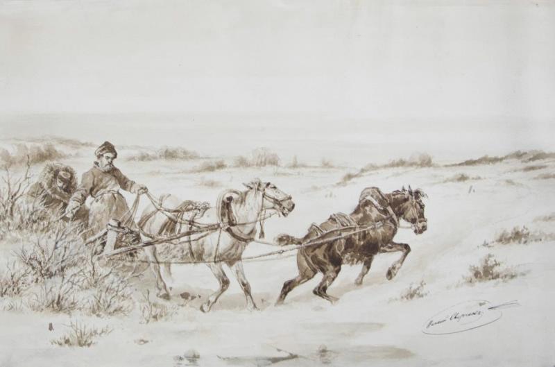 🖼Сверчков Николай Егорович (1817-1898). Зимняя езда. XIX в.