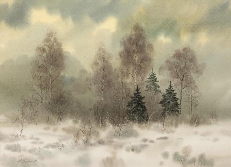 🖼Роганин Александр Николаевич (1952). Березки зимой. 1995.