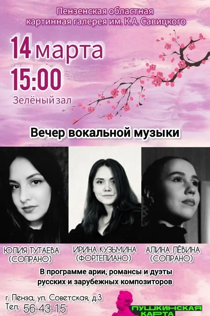 14 марта приглашаем вас окунуться в мир высокого искусства! В величественной атмосфере Зеленого зала Пензенской картинной галереи состоится концерт солистов Пензенского музыкального колледжа им. А.А. Архангельского.