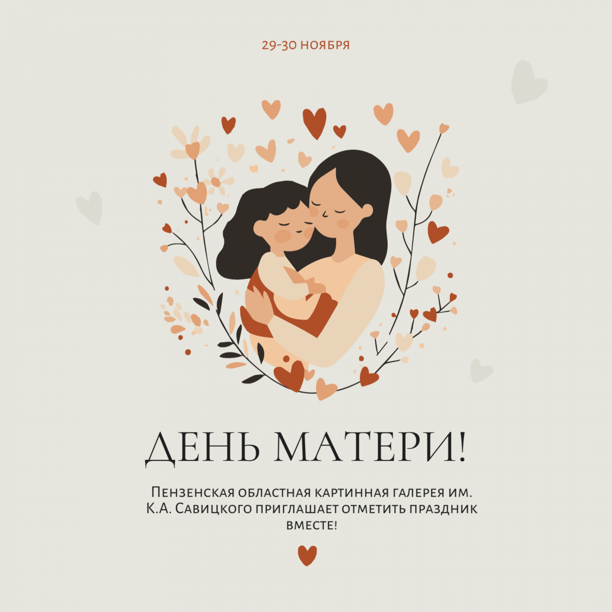 🎁 В честь праздника, 29 и 30 ноября, Пензенская картинная галерея дарит всем мамам, пришедшим с семьёй, бесплатный билет на наши экспозиции!